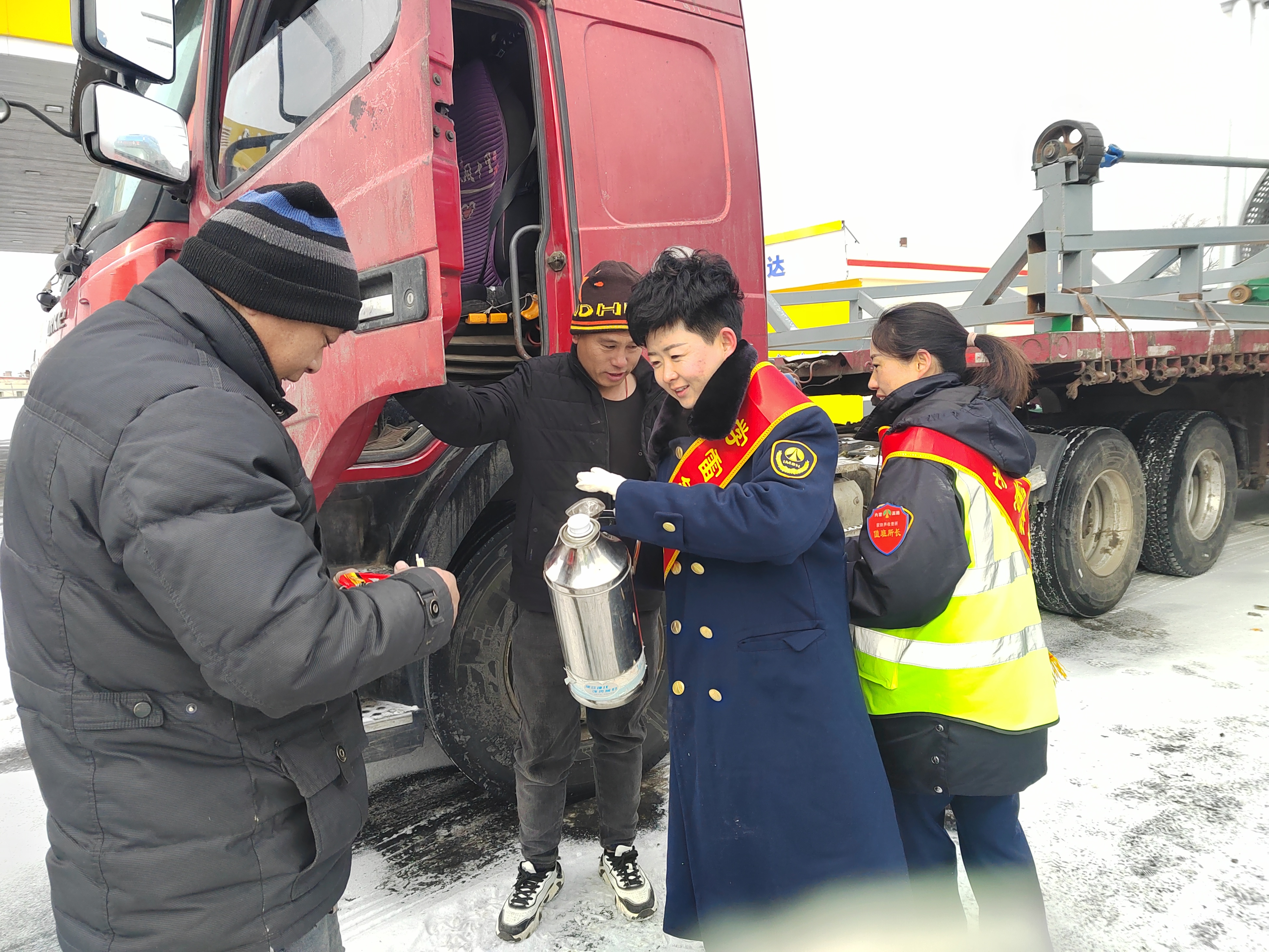 大范圍強降雪導致沿線高速收費所入口實行交通管制,部分車輛滯留在高速入口廣場。鄂爾多斯分公司各收費所積極開展志愿服務活動,為司乘開放廁所、提供手機充電服務等便民服務,第一時間為滯留司乘人員送去熱水、火腿腸、方便面等應急食品,保障滯留司機能喝上一口熱水、吃上一口熱飯,同時宣傳特殊天氣安全行車知識,熱情、耐心的回應司乘人員的需求,為司乘人員提供了實實在在的幫助,用實際行動讓司乘人員在寒冷的冬日感受到溫暖。