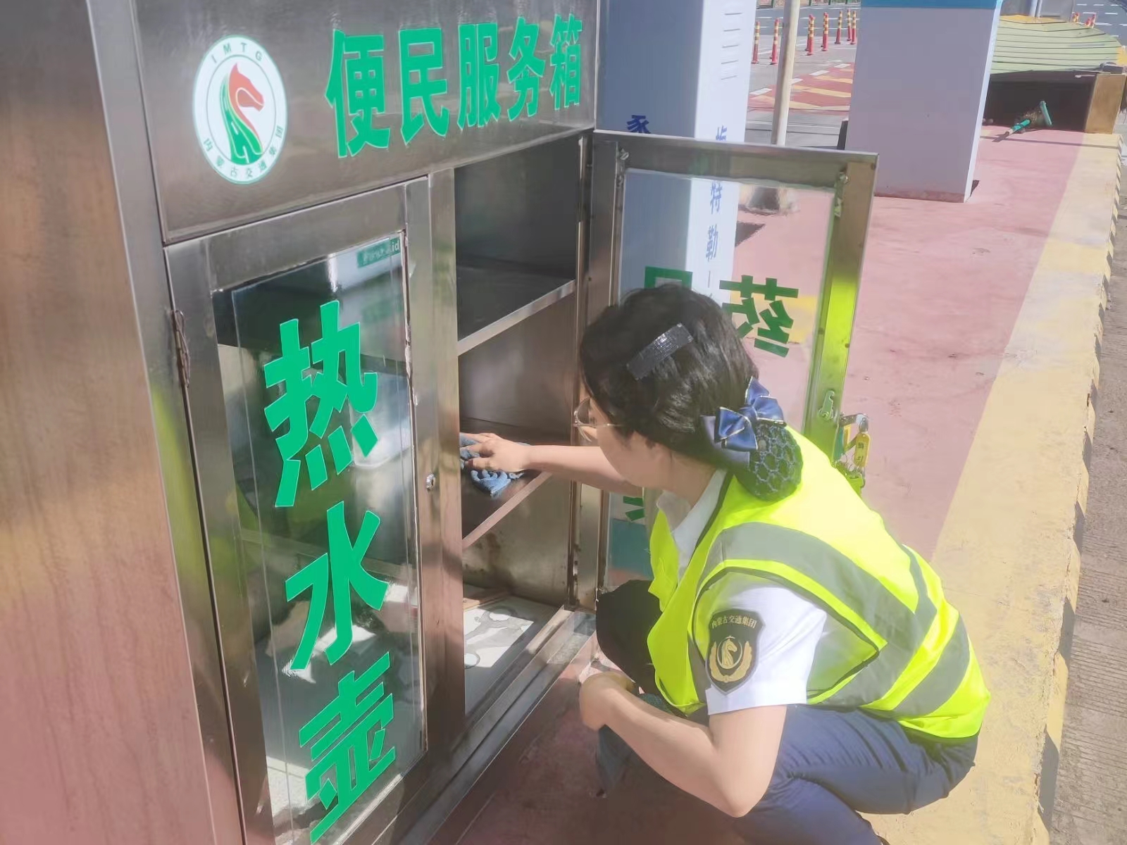 為進(jìn)一步提升運(yùn)營(yíng)服務(wù)品質(zhì),以建設(shè)出入順心、服務(wù)暖心、環(huán)境舒心、運(yùn)營(yíng)得心的滿(mǎn)意窗口,滿(mǎn)足司乘美好出行需求,推進(jìn)和保障收費(fèi)站服務(wù)品質(zhì)提升,蘭家梁收費(fèi)所在收費(fèi)廣場(chǎng)設(shè)置便民服務(wù)臺(tái),為過(guò)往司乘提供熱水、修車(chē)工具、便民藥箱、道路指引、應(yīng)急救助等延伸服務(wù),不斷擦亮文明服務(wù)“名片”。