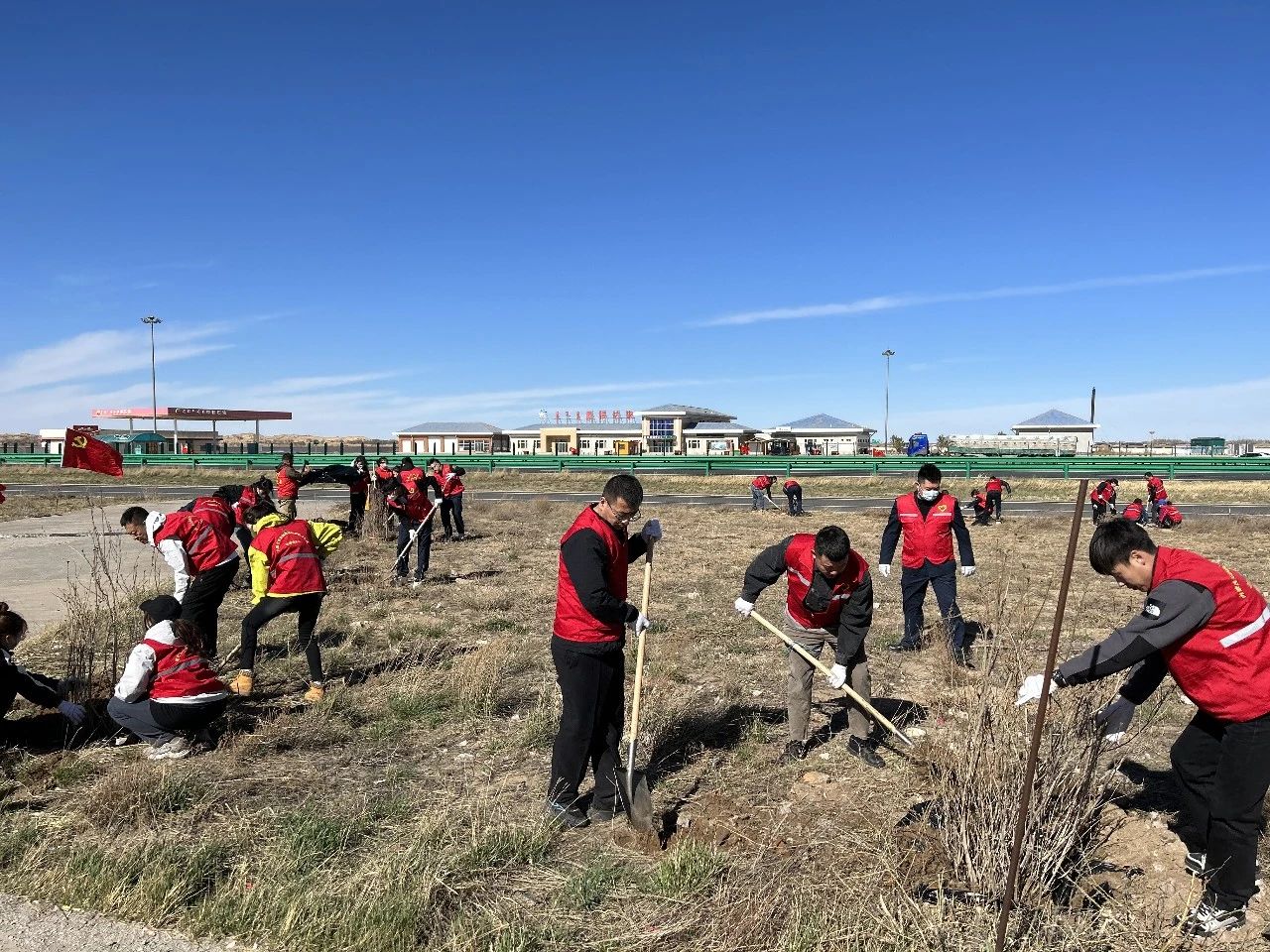 春意盎然、草木初萌。眼下,正是植樹播綠的最好時(shí)節(jié)。為認(rèn)真貫徹落實(shí)習(xí)近平總書記考察內(nèi)蒙古時(shí)的重要講話精神和習(xí)近平生態(tài)文明思想,深入踐行“綠水青山就是金山銀山”的發(fā)展理念,助力打贏渾善達(dá)克沙地殲滅戰(zhàn),4月23日,內(nèi)蒙古交通集團(tuán)錫林郭勒分公司組織廣大黨員干部、共青團(tuán)員和青年職工赴G1013海張高速桑根達(dá)來服務(wù)區(qū)開展春季義務(wù)植樹活動(dòng),以實(shí)際行動(dòng)弘揚(yáng)“三北精神”,展現(xiàn)了內(nèi)蒙古交通人的良好形象。分公司在家領(lǐng)導(dǎo)班子成員、機(jī)關(guān)各部室和一線單位團(tuán)員青年職工共80余人參加活動(dòng)。