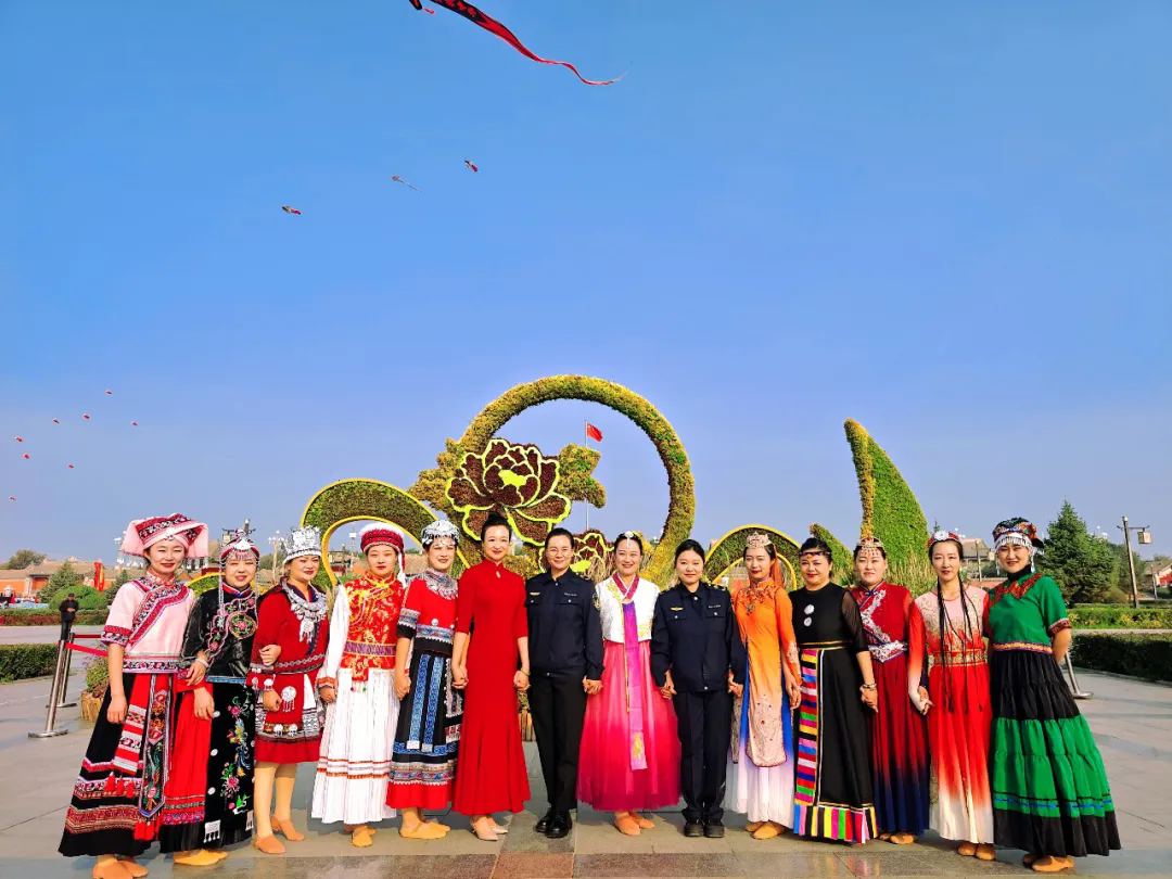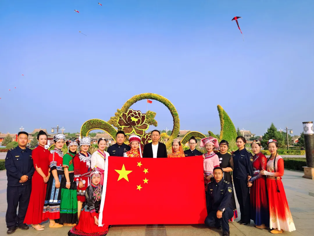 演出結(jié)束后,職工們身著各民族服飾與國旗合影留念,用獨特的方式為祖國送上最美好的祝福。
