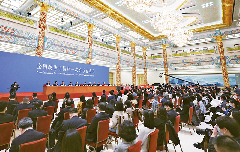 中國共產(chǎn)黨領(lǐng)導的多黨合作和政治協(xié)商制度作為我國一項基本政治制度,是中國共產(chǎn)黨、中國人民和各民主黨派、無黨派人士的偉大政治創(chuàng)造,是從中國土壤中生長出來的新型政黨制度。長期以來,各民主黨派同中國共產(chǎn)黨長期共存、互相監(jiān)督、肝膽相照、榮辱與共,履行民主監(jiān)督職能,在幫助中國共產(chǎn)黨科學決策、民主決策、依法決策上作出了重要貢獻。圖為2023年3月5日,全國政協(xié)十四屆一次會議在北京人民大會堂舉行民主黨派中央和全國工商聯(lián)領(lǐng)導人記者會。 新華社記者 曹燦/攝
