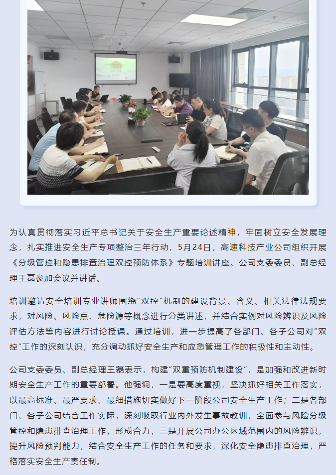 【安全培訓(xùn)】高速科技產(chǎn)業(yè)公司舉辦《分級管控和隱患排查治理雙控預(yù)防體系》專題講座