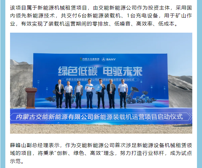 【子公司動(dòng)態(tài)】內(nèi)蒙古交能新能源有限公司“綠色低碳 電驅(qū)未來”新能源裝載機(jī)運(yùn)營項(xiàng)目啟動(dòng)儀式圓滿舉行