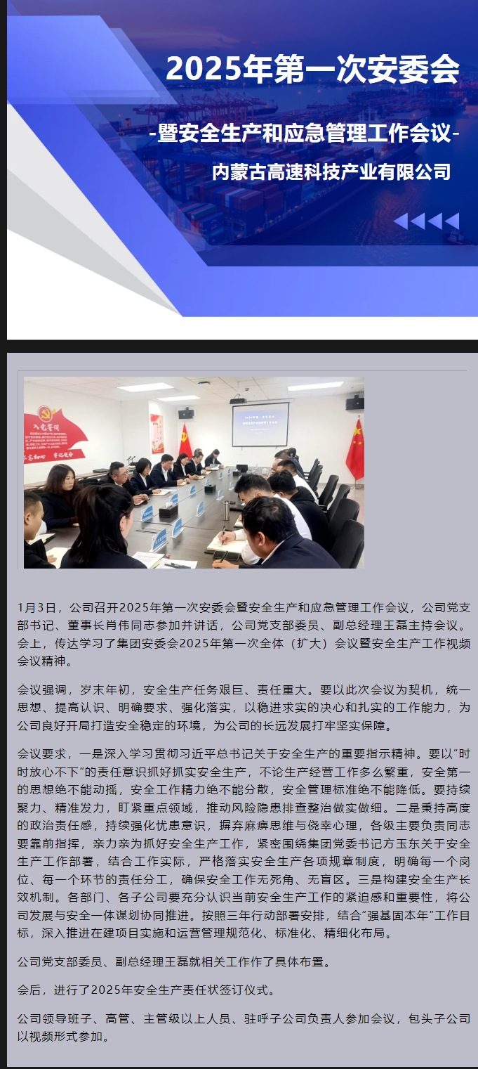 公司召開2025年第一次安委會暨安全生產(chǎn)和應(yīng)急管理工作會議