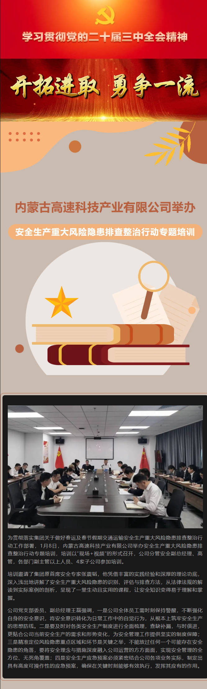 內(nèi)蒙古高速科技產(chǎn)業(yè)有限公司舉辦安全生產(chǎn)重大風(fēng)險(xiǎn)隱患排查整治行動專題培訓(xùn)