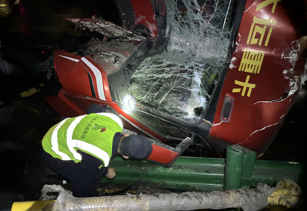 收費(fèi)隊(duì)長(zhǎng)張文廷帶著隊(duì)員到達(dá)現(xiàn)場(chǎng)后發(fā)現(xiàn)貨車因碰撞嚴(yán)重變形,司機(jī)被卡在駕駛室內(nèi),無(wú)法動(dòng)彈且意識(shí)逐漸模糊。面對(duì)這種情況,張文廷第一時(shí)間撥打120急救電話和119消防支援,同時(shí)上報(bào)高速交警及路政部門,組織同事在事故后方設(shè)置警示標(biāo)志,避免二次事故發(fā)生。在等待救護(hù)車和消防救援人員到來(lái)的過(guò)程中,張文廷一直與受傷司機(jī)進(jìn)行交流,試圖讓其保持清醒狀態(tài)。在消防救援人員到達(dá)現(xiàn)場(chǎng)后他們積極配合消防人員,協(xié)助使用專業(yè)破拆工具對(duì)駕駛室進(jìn)行破拆,將司機(jī)安全地從車內(nèi)移出。救護(hù)車到達(dá)現(xiàn)場(chǎng)后,張文廷隊(duì)長(zhǎng)配合指引救援,將受傷人員轉(zhuǎn)移至救護(hù)車,經(jīng)檢查,駕駛員腿部受傷嚴(yán)重,目前已無(wú)生命危險(xiǎn)。