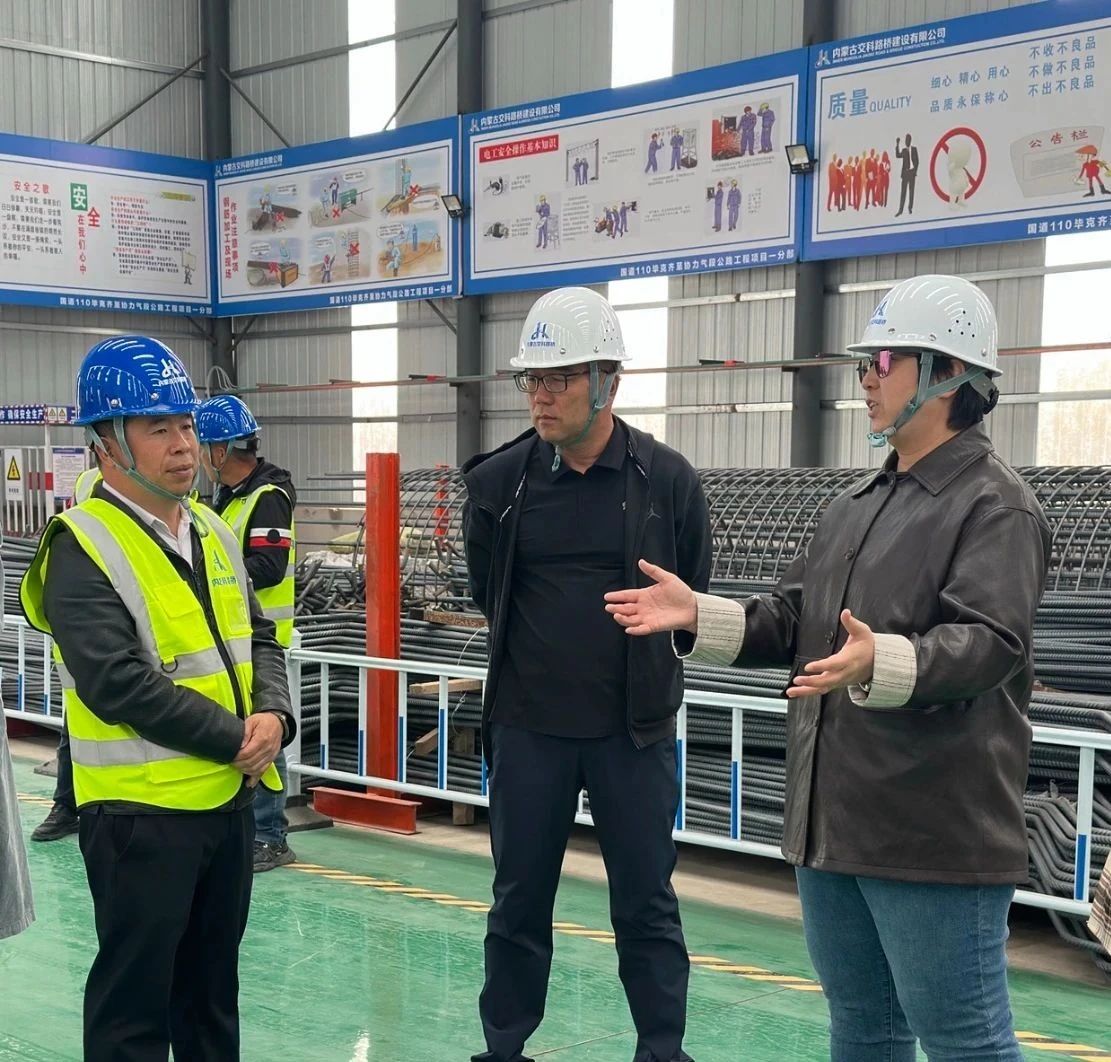 隨后,曹凌燕一行深入項目混凝土拌合站、鋼筋集中加工廠、預制場等區(qū)域,詳細詢問了項目關鍵節(jié)點、施工難點及應對措施,并強調全體參建人員要秉持“精益求精、止于至善”經營理念,以更高標準、更嚴要求、更實舉措推進項目建設,加強安全隱患排查,堅持打贏任務達標、市場拓展、多元發(fā)展“三大攻堅戰(zhàn)”,為公司高質量發(fā)展貢獻更大力量。