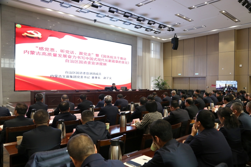 12月8日,自治區(qū)國(guó)資委黨委“感黨恩、聽(tīng)黨話(huà)、跟黨走”暨《國(guó)務(wù)院關(guān)于推動(dòng)內(nèi)蒙古高質(zhì)量發(fā)展奮力書(shū)寫(xiě)中國(guó)式現(xiàn)代化新篇章的意見(jiàn)》宣講團(tuán)成員,內(nèi)蒙古文化旅游投資集團(tuán)有限公司黨委書(shū)記、董事長(zhǎng)趙子義深入內(nèi)蒙古交通集團(tuán)進(jìn)行專(zhuān)題宣講。內(nèi)蒙古交通集團(tuán)黨委書(shū)記、董事長(zhǎng)張翔主持并講話(huà)。
