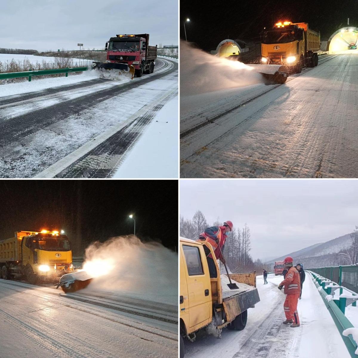 呼倫貝爾分公司各養(yǎng)護(hù)工區(qū)堅(jiān)持多種清雪設(shè)備聯(lián)合作業(yè),積極調(diào)配清雪設(shè)備,及時(shí)撒布融雪劑、防滑料,在興安嶺隧道、扎敦河隧道、各收費(fèi)所匝道上下坡等位置進(jìn)行重點(diǎn)清雪除冰,截至10月31日9點(diǎn)共出動(dòng)除雪設(shè)備47輛,人員87人。經(jīng)過(guò)全體養(yǎng)護(hù)員工的晝夜奮戰(zhàn),目前道路積雪積冰得到有效清理。