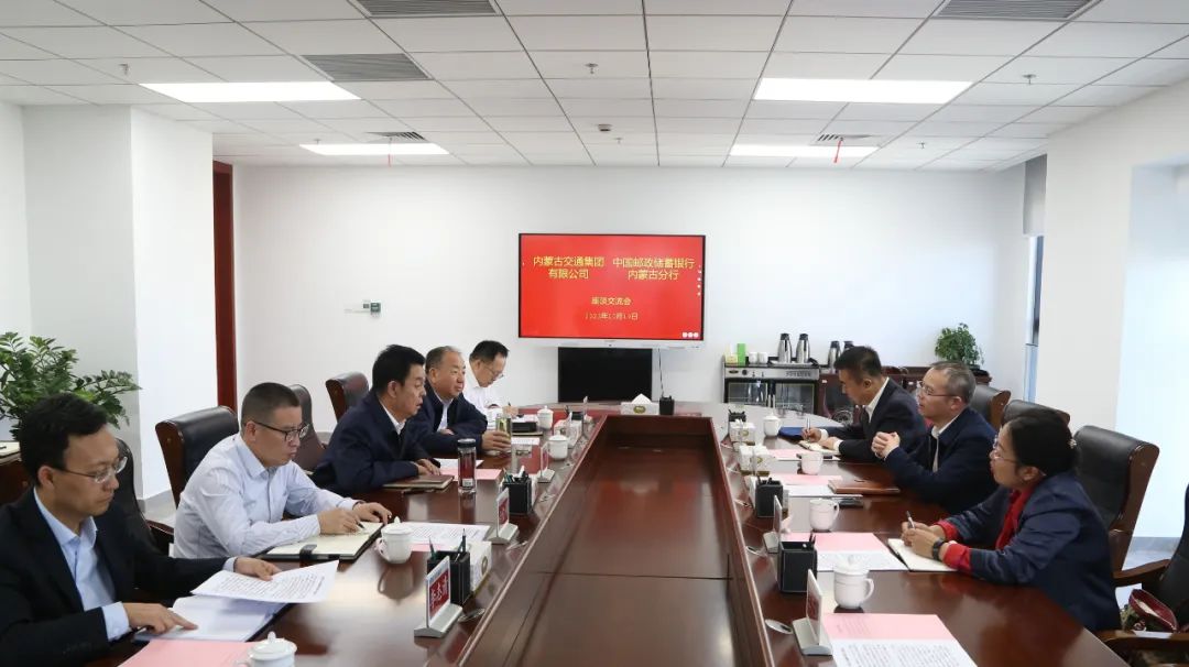 10月19日下午,內(nèi)蒙古交通集團(tuán)黨委書記、董事長(zhǎng)張翔與到訪的中國(guó)郵政儲(chǔ)蓄銀行內(nèi)蒙古分行黨委書記肖和平一行,就深入開展業(yè)務(wù)合作進(jìn)行交流,集團(tuán)黨委副書記、總經(jīng)理劉學(xué)武,黨委委員、總會(huì)計(jì)師白寶祥,雙方有關(guān)部門和企業(yè)負(fù)責(zé)人參加座談。