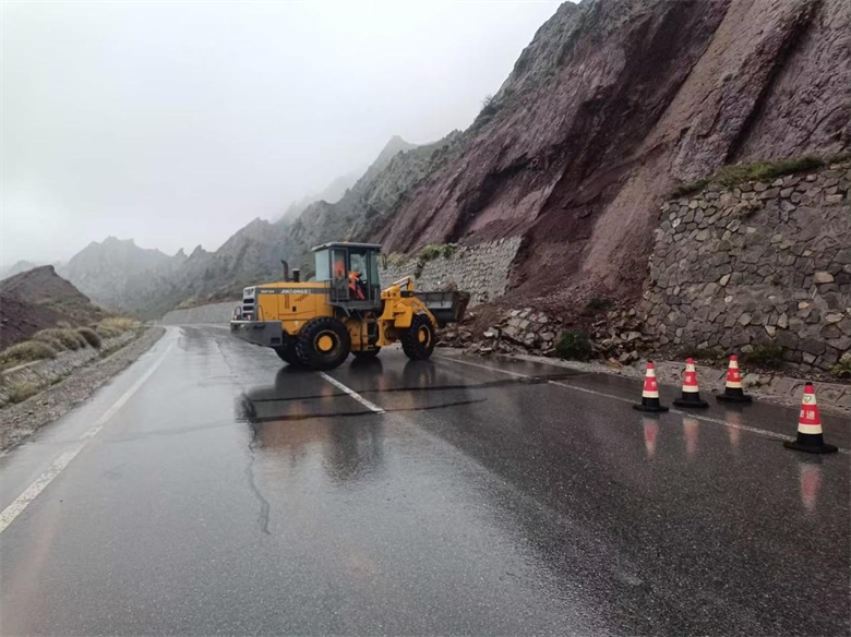 發(fā)現(xiàn)險(xiǎn)情后,阿拉善分公司與蒙通養(yǎng)護(hù)阿拉善分公司快速反應(yīng)、立即行動(dòng),第一時(shí)間將險(xiǎn)情上報(bào)集團(tuán)公司。兩家單位主要領(lǐng)導(dǎo)第一時(shí)間趕赴現(xiàn)場(chǎng),指導(dǎo)應(yīng)急搶險(xiǎn)工作。通過(guò)初步勘驗(yàn),發(fā)現(xiàn)護(hù)面墻滑塌面積約120㎡,坍塌方量約216立方米,碎落土石方占據(jù)應(yīng)急車道與部分行車道,嚴(yán)重影響道路行車安全。雙方立即啟動(dòng)應(yīng)急預(yù)案,組織養(yǎng)護(hù)人員和機(jī)械設(shè)備趕赴現(xiàn)場(chǎng)進(jìn)行處置,并向相關(guān)部門(mén)上報(bào)險(xiǎn)情。與此同時(shí),交警部門(mén)于16時(shí)40分對(duì)道路實(shí)施單向臨時(shí)交通管制,塔爾嶺養(yǎng)護(hù)作業(yè)中心同步利用裝載機(jī)對(duì)塌落土石方進(jìn)行清理。