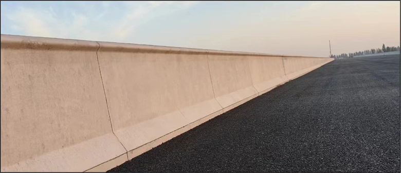 由內(nèi)蒙古路橋集團(tuán)有限責(zé)任公司承建的內(nèi)蒙古打造的第一條智慧高速公路示范項(xiàng)目—S43呼和浩特新機(jī)場(chǎng)高速公路。在項(xiàng)目防撞護(hù)欄的施工過程中,創(chuàng)新使用《預(yù)留真縫假縫的混凝土防撞護(hù)欄施工工法》,顯著提升了整體的施工進(jìn)度。該工法采用可循環(huán)利用的定型鋼板,只需在支模前將組合好的隔縫鋼板組件與護(hù)欄模板固定即可施工,省時(shí)省力。對(duì)比木膠板施工工法,保證預(yù)留縫外形美觀且線形直順,并減少了防撞護(hù)欄的不規(guī)則裂縫。