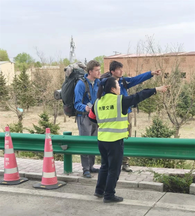 情景三:同樣在假期第二日,呼和浩特東收費所也發(fā)生了暖心一幕。兩名外國游客背著登山包來到收費站,面露焦急地用手勢比劃詢問路線。值班人員用英語親切問候,耐心傾聽他們的出行訴求。針對外國游客對復雜路況的困惑,值班人員用簡潔英語和清晰手勢認真解答了困惑,得到了真誠的感謝。