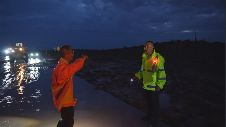 險(xiǎn)情發(fā)生后,烏海分公司相關(guān)負(fù)責(zé)人帶領(lǐng)養(yǎng)護(hù)、安全等部門負(fù)責(zé)人及蒙通養(yǎng)護(hù)工程分公司項(xiàng)目經(jīng)理、蒙通烏海分公司負(fù)責(zé)人趕赴水毀路段,現(xiàn)場部署警示標(biāo)志、疏導(dǎo)交通,并調(diào)集應(yīng)急機(jī)械和人員對(duì)受損路段進(jìn)行臨時(shí)加固。為防范夜間次生災(zāi)害,領(lǐng)導(dǎo)班子成員帶頭值守,組織人員24小時(shí)輪班監(jiān)測路況,確保過往車輛安全通行。