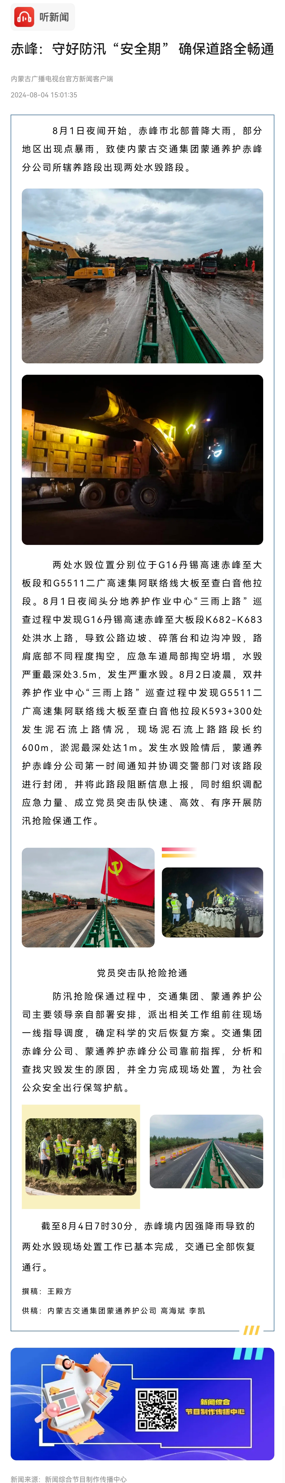 赤峰:守好防汛“安全期” 確保道路全暢通