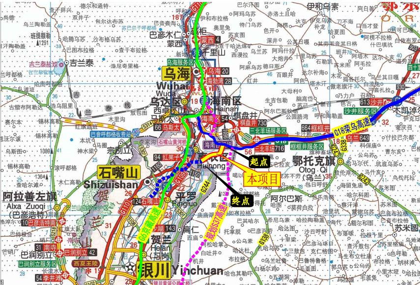 本項(xiàng)目所處的烏海市和石嘴山市是我國西北部的新興工業(yè)城市,西北是我國絲綢之路經(jīng)濟(jì)帶的核心區(qū),該區(qū)域?yàn)榻z綢之路經(jīng)濟(jì)帶的一個(gè)重要節(jié)點(diǎn)。烏海至瑪沁國家高速公路是國家在西部地區(qū)規(guī)劃的一條重要的南北交通大動(dòng)脈,連通中、東部經(jīng)濟(jì)發(fā)達(dá)地區(qū),對構(gòu)建西部地區(qū)通疆達(dá)海的新通道,加強(qiáng)西北與華中和環(huán)渤海地區(qū)的溝通交流,起到非常顯著的促進(jìn)作用。