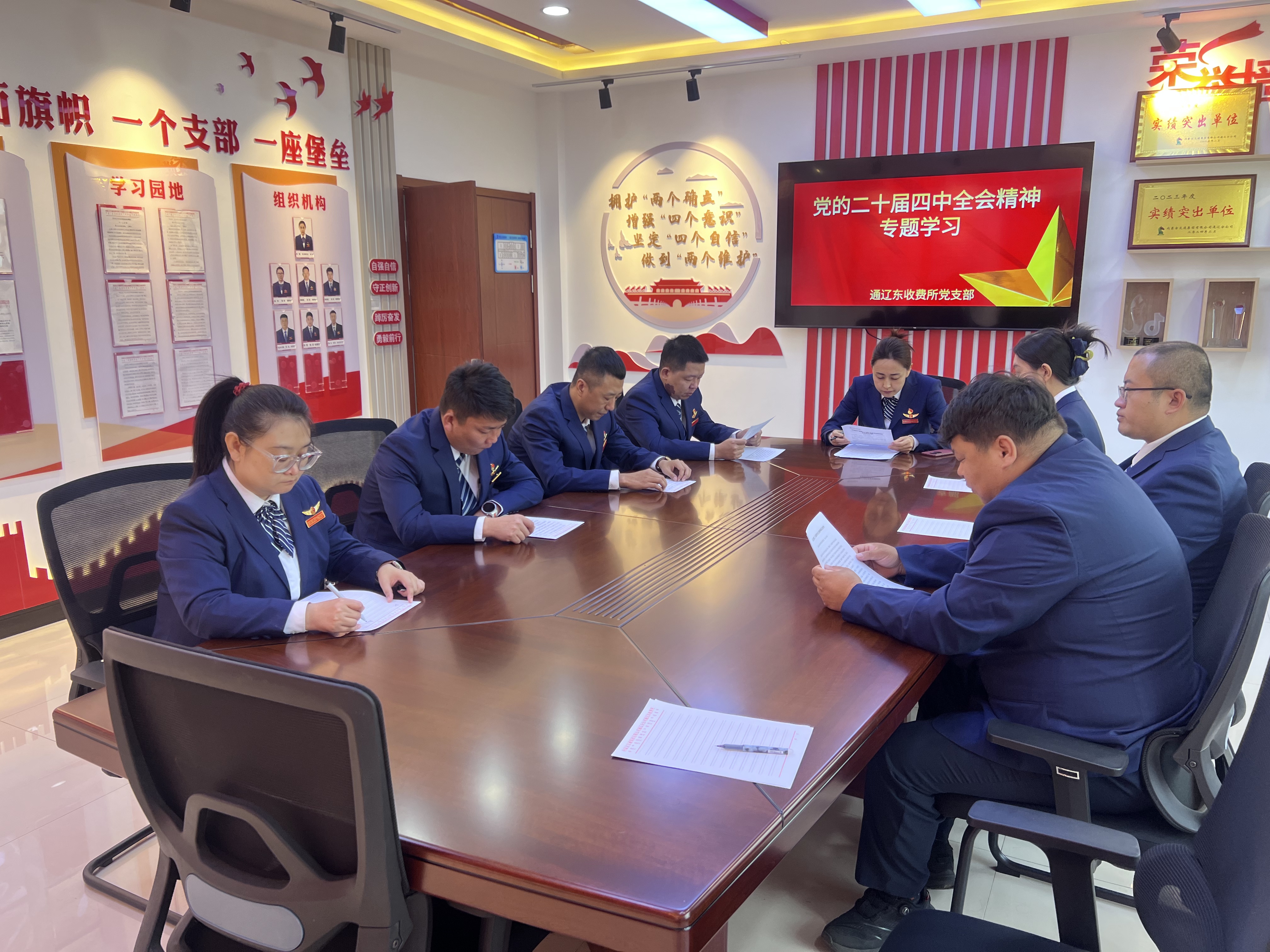 以積極創(chuàng)建“五彩向陽 青春建功”黨支部特色為抓手,組織全體黨員及青年職工開展黨的二十屆四中全會精神專題學(xué)習(xí)活動,推動全會精神在基層收費(fèi)崗位落地生根,切實將理論學(xué)習(xí)成果轉(zhuǎn)化為服務(wù)群眾、履職盡責(zé)的強(qiáng)大動力,為支部特色創(chuàng)建注入思想動能。支部書記圍繞黨的二十屆四中全會提出的“堅持和完善中國特色社會主義制度、推進(jìn)國家治理體系和治理能力現(xiàn)代化” 核心要義,結(jié)合支部工作實際,詳細(xì)解讀全會精神對基層收費(fèi)服務(wù)工作的指導(dǎo)意義,特別強(qiáng)調(diào)要深刻把握以人民為中心的發(fā)展思想,將其融入日常收費(fèi)窗口服務(wù)、應(yīng)急保暢等工作認(rèn)知中,切實以制度意識提升崗位責(zé)任感。