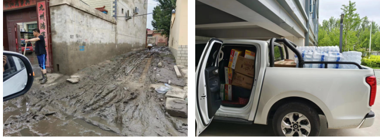 受強臺風“杜蘇芮”影響,近日,涿州市遭受洪澇災害,受災嚴重,給當?shù)厝嗣袢罕娚敭a(chǎn)帶來重大損失。這一情況引起了新鎮(zhèn)匝道收費站全體職工的關注,所站通過各種渠道與涿州東收費站工作人員取得聯(lián)系,得知涿州市碼頭鎮(zhèn)碼頭村內(nèi)澇嚴重位置水位仍有一尺余深,現(xiàn)洪水已退去,部分路面泥濘嚴重,在群眾陸續(xù)回家清理家園之際,卻面臨生活物資短缺的困難。