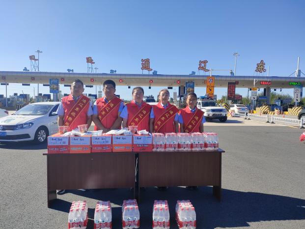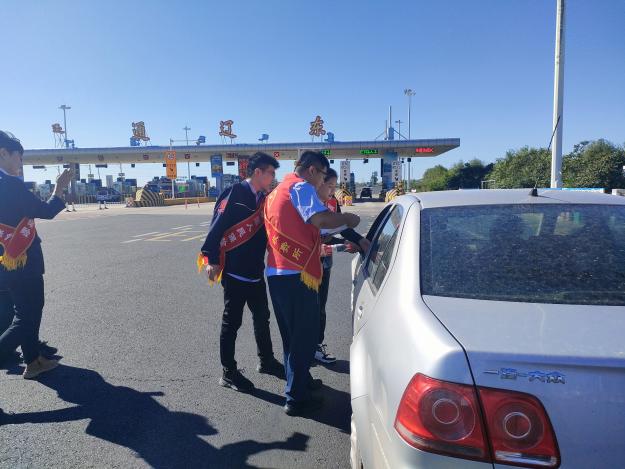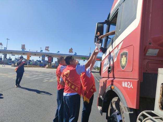 活動中,志愿者職工們身穿紅色馬甲、披綬帶為過往司乘送去中秋、國慶假期的誠摯祝福,提示司乘國慶期間高速通行注意事項及免費時間,提前做好出行安排,同時志愿者們還貼心的為過往司乘送去了飲用水、口罩和方便面。