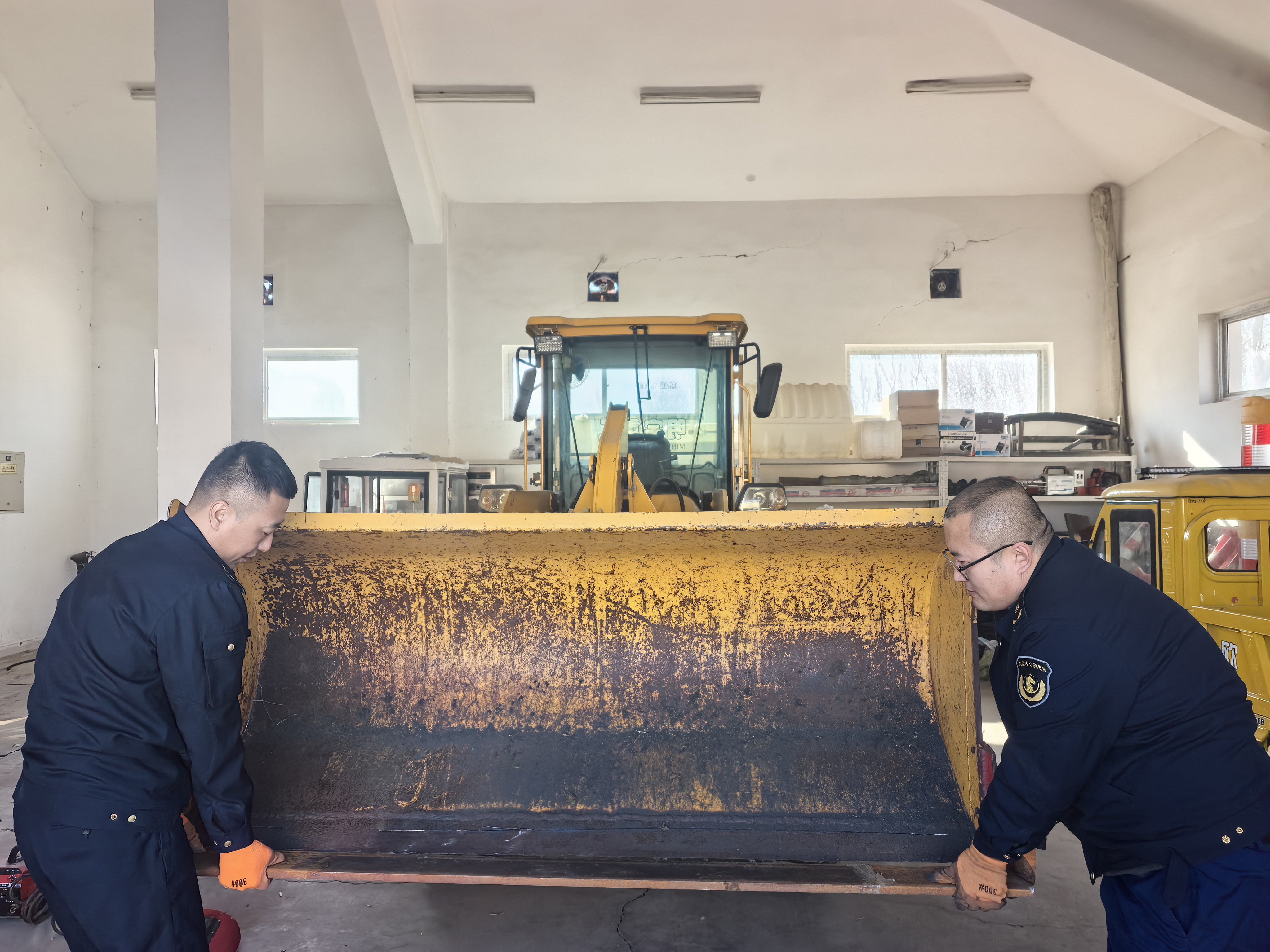 在物資儲備方面,通遼東收費(fèi)所專項清點、補(bǔ)充除雪物資,確保融雪劑、推雪鏟、塑料雪推、警示標(biāo)志等關(guān)鍵物資足量到位、分類存放,做到賬物相符、取用便捷。同時,對鏟車等機(jī)械設(shè)備進(jìn)行全面“體檢”,重點檢查發(fā)動機(jī)、液壓系統(tǒng)、鏟板等核心部件,及時維修保養(yǎng)存在故障的設(shè)備,確保所有機(jī)械處于“油滿、電足、性能佳”的待命狀態(tài),隨時能投入除雪作業(yè)。