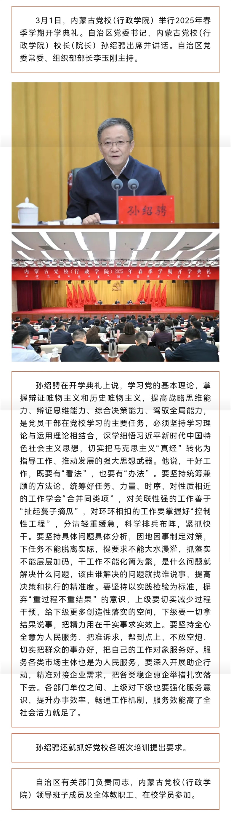 內(nèi)蒙古黨校(行政學(xué)院)舉行2025年春季學(xué)期開(kāi)學(xué)典禮 孫紹騁出席并講話
