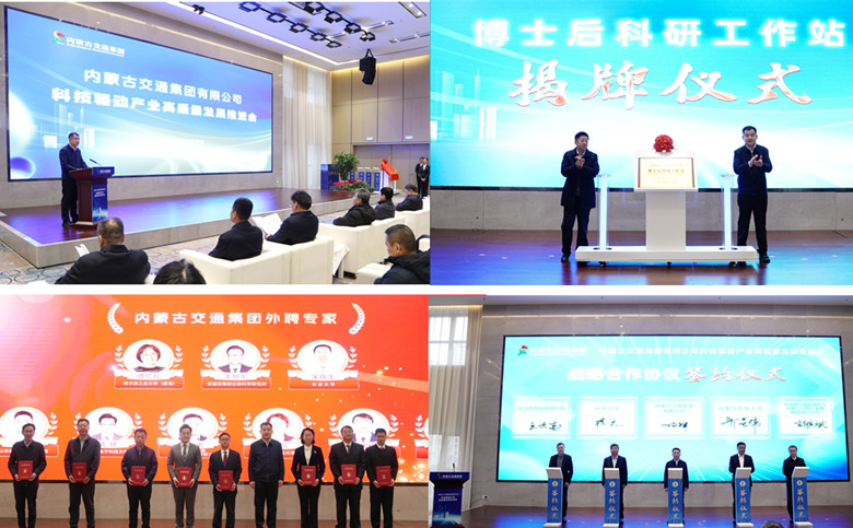 會上,集團(tuán)領(lǐng)導(dǎo)與自治區(qū)有關(guān)廳局領(lǐng)導(dǎo)共同為內(nèi)蒙古交通集團(tuán)博士后科研工作站、科學(xué)技術(shù)協(xié)會揭牌;自治區(qū)黨委組織部有關(guān)同志宣讀了集團(tuán)通過自治區(qū)“英才興蒙”工程人才類別認(rèn)定人員名單;方玉東為集團(tuán)聘請的9名國內(nèi)知名專家頒發(fā)了聘書。隨后,內(nèi)蒙古交通集團(tuán)分別與中兵北斗應(yīng)用發(fā)展研究院、中國神華煤制油化工鄂爾多斯煤制油分公司、長安大學(xué)、內(nèi)蒙古農(nóng)業(yè)大學(xué)簽署戰(zhàn)略合作框架協(xié)議。會議期間還舉行了“揭榜掛帥”科技項目掛帥儀式。揭榜掛帥項目的立項將進(jìn)一步推動集團(tuán)創(chuàng)新鏈與產(chǎn)業(yè)鏈精準(zhǔn)對接,為集團(tuán)產(chǎn)業(yè)發(fā)展關(guān)鍵核心技術(shù)突破提供有力保障。