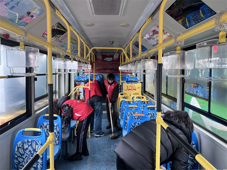活動中,黨員干部職工共同乘坐“學(xué)雷鋒”主題公交車零距離感受雷鋒精神文化脈動,并結(jié)合實(shí)際工作互相分享雷鋒精神的感人事跡。在公交三公司開展打掃公交車志愿活動,黨員志愿者身穿紅色志愿馬褂、帶著工具打掃公交車,大家分工明確,齊心協(xié)力,細(xì)心地整理車上坐墊、清潔車廂衛(wèi)生,仔細(xì)擦拭車窗上的塵土和污漬。經(jīng)過大家的辛勤勞動,公交車煥然一新。
