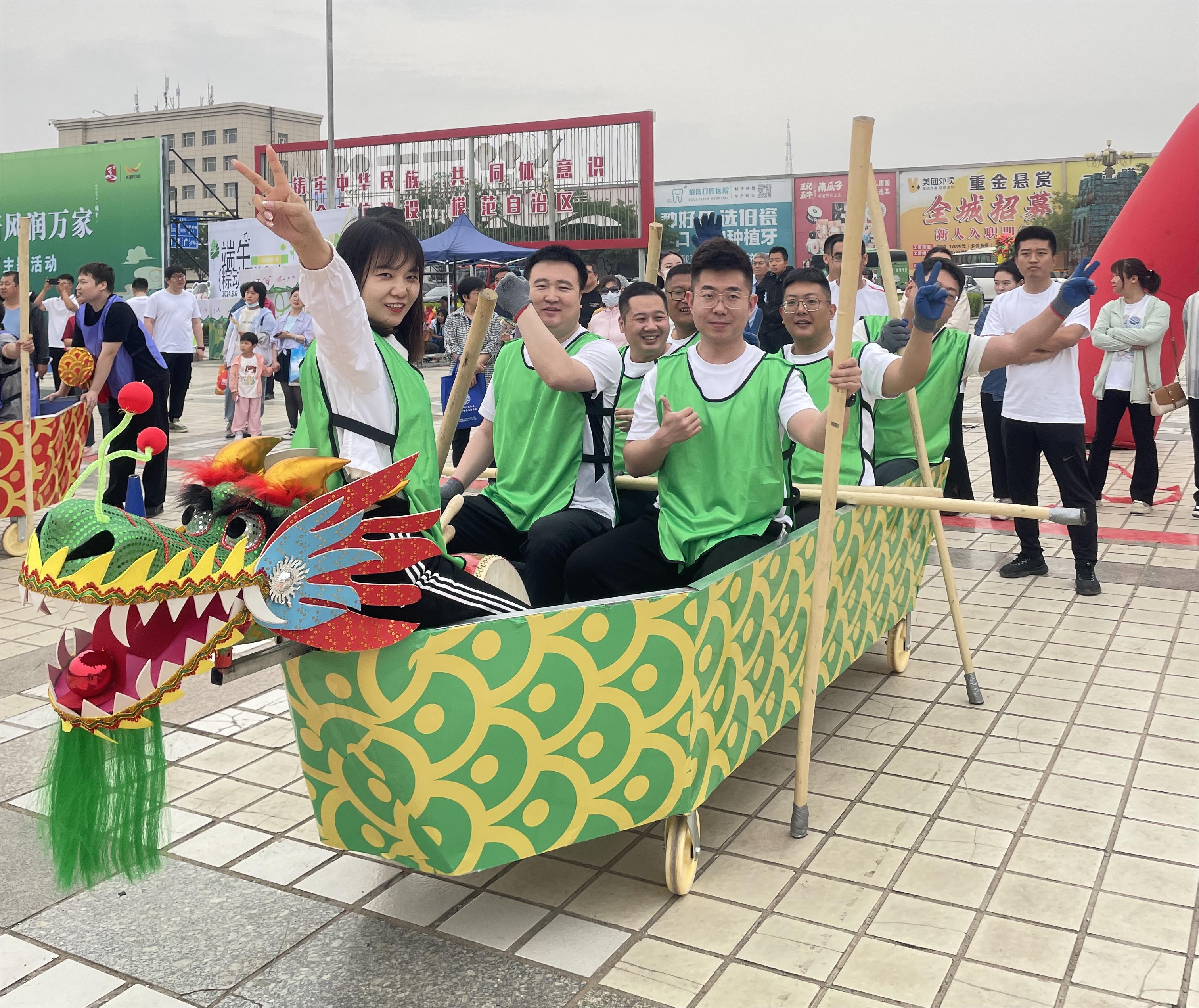 團(tuán)隊(duì)協(xié)作接力“旱地”賽龍舟是一種非常有趣且富有挑戰(zhàn)性團(tuán)隊(duì)活動(dòng),結(jié)合了賽龍舟的競(jìng)技元素和接力賽的合作精神。作為北方人,隊(duì)員們第一次參加賽龍舟這種端午節(jié)最具代表性的傳統(tǒng)活動(dòng),既新奇又激動(dòng)。比賽過(guò)程中,在充滿激情的號(hào)子聲中,隊(duì)員們奮勇拼搏、團(tuán)結(jié)協(xié)作,于20支隊(duì)伍中脫穎而出,取得第二名的好成績(jī)。