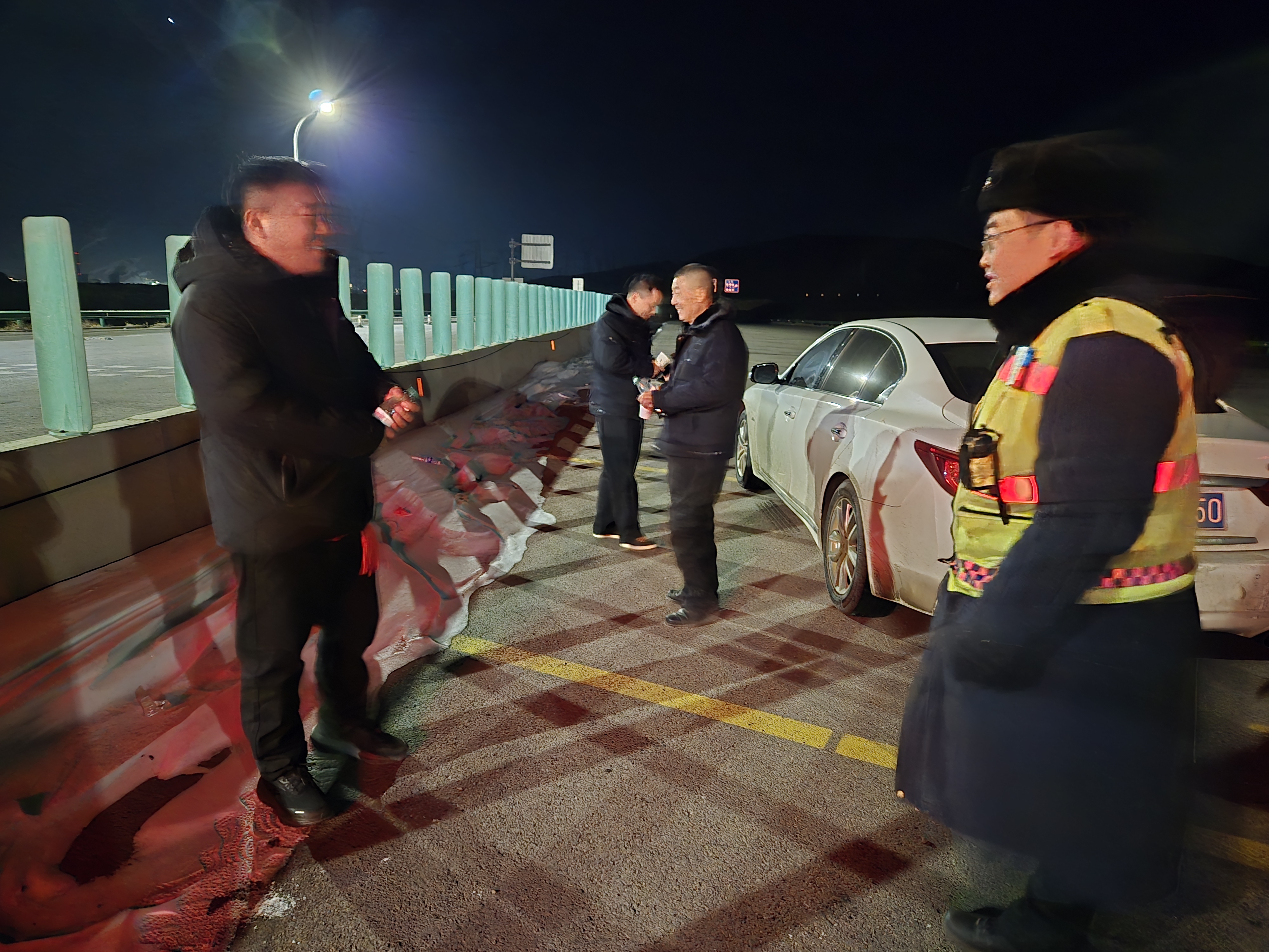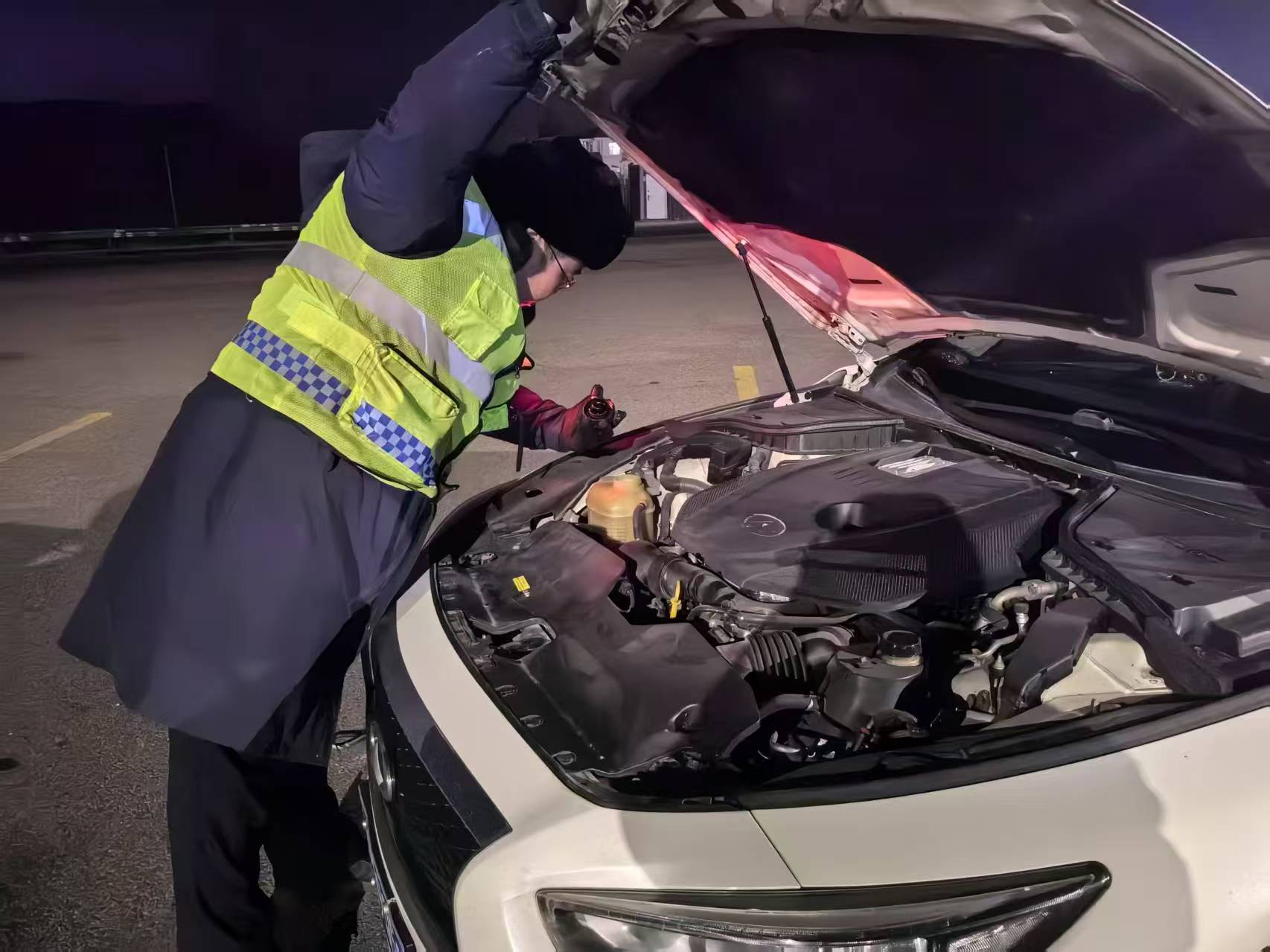 他一邊安排收費(fèi)員范樂耐心安撫司機(jī)的情緒,讓他不要過于擔(dān)憂;一邊迅速跑回所內(nèi)為司機(jī)端來一杯熱氣騰騰的熱水,為他在這寒冷的冬夜中送去一絲溫暖。同時,劉洋憑借自己日常積累的資源,迅速聯(lián)系到附近口碑良好的修理工師傅,并詳細(xì)描述了車輛的故障表現(xiàn),收費(fèi)員吳程也主動上前幫忙照明,劉洋則協(xié)助司機(jī)按照修理工的指導(dǎo)對車輛進(jìn)行檢查。經(jīng)過初步判斷,車輛故障為發(fā)動機(jī)問題,無法在現(xiàn)場進(jìn)行維修,只能聯(lián)系拖車將車輛拖至修理廠。