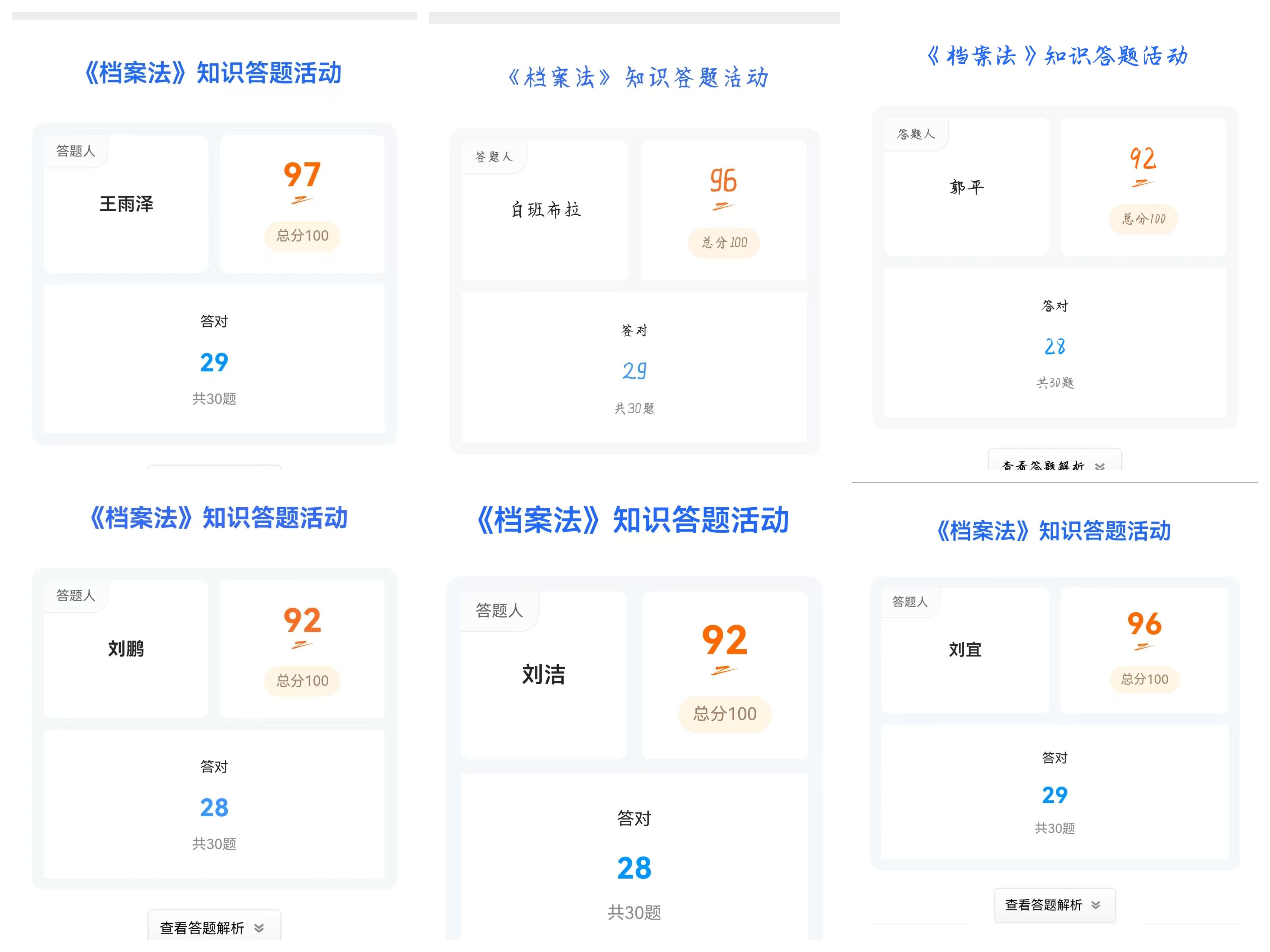 活動(dòng)期間,海南西收費(fèi)所依托工作群、交接班會(huì)議等方式,傳達(dá)了集團(tuán)公司有關(guān)檔案工作的部署,學(xué)習(xí)了相關(guān)檔案法律法規(guī)和規(guī)章制度,同時(shí)所內(nèi)全體干部職工31人參加了內(nèi)蒙古交通集團(tuán)有限公司舉辦的《中華人民共和國(guó)檔案法》知識(shí)線上答題活動(dòng),引導(dǎo)全體職工樹(shù)立檔案意識(shí)、熟悉檔案知識(shí),增強(qiáng)對(duì)檔案工作的責(zé)任感和使命感。