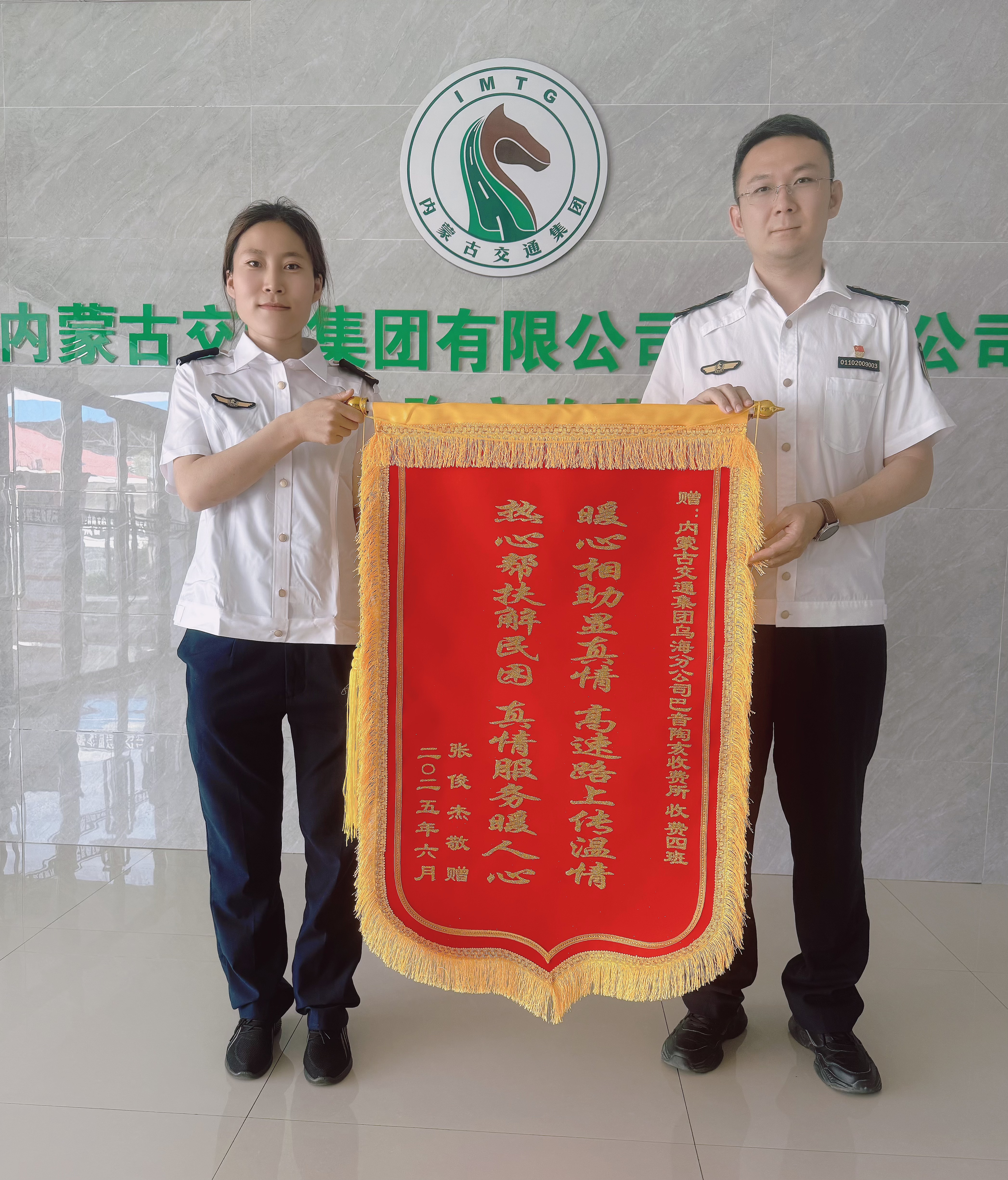 考慮到附近加油站路途較遠(yuǎn),司機(jī)獨(dú)自前往購買燃油極為不便,收費(fèi)員朱曉龍主動(dòng)站了出來,毫不猶豫地說道:“師傅,我開車去幫您買燃油吧!”司機(jī)聽后,眼中滿是感激,連忙道謝。購買燃油歸來后,他小心翼翼地將燃油注入車輛油箱。隨著發(fā)動(dòng)機(jī)重新發(fā)出轟鳴聲,司機(jī)緊繃的神經(jīng)終于放松下來,臉上露出了欣慰的笑容,對(duì)收費(fèi)所工作人員連聲道謝。本以為這件事就此畫上句號(hào),沒想到幾天后,一面錦旗跨越百里寄到了收費(fèi)所。錦旗上“暖心相助顯真情,高速路上傳溫情;熱心幫扶解民困,真情服務(wù)暖人心”幾行燙金大字在陽光的照耀下熠熠生輝,無聲地訴說著司機(jī)對(duì)收費(fèi)所工作人員的感激之情。這面錦旗,不僅是一份榮譽(yù)的象征,更是一面鏡子,映照出巴音陶亥收費(fèi)所服務(wù)為民的初心,也折射出人與人之間最純粹、最本真的善意。