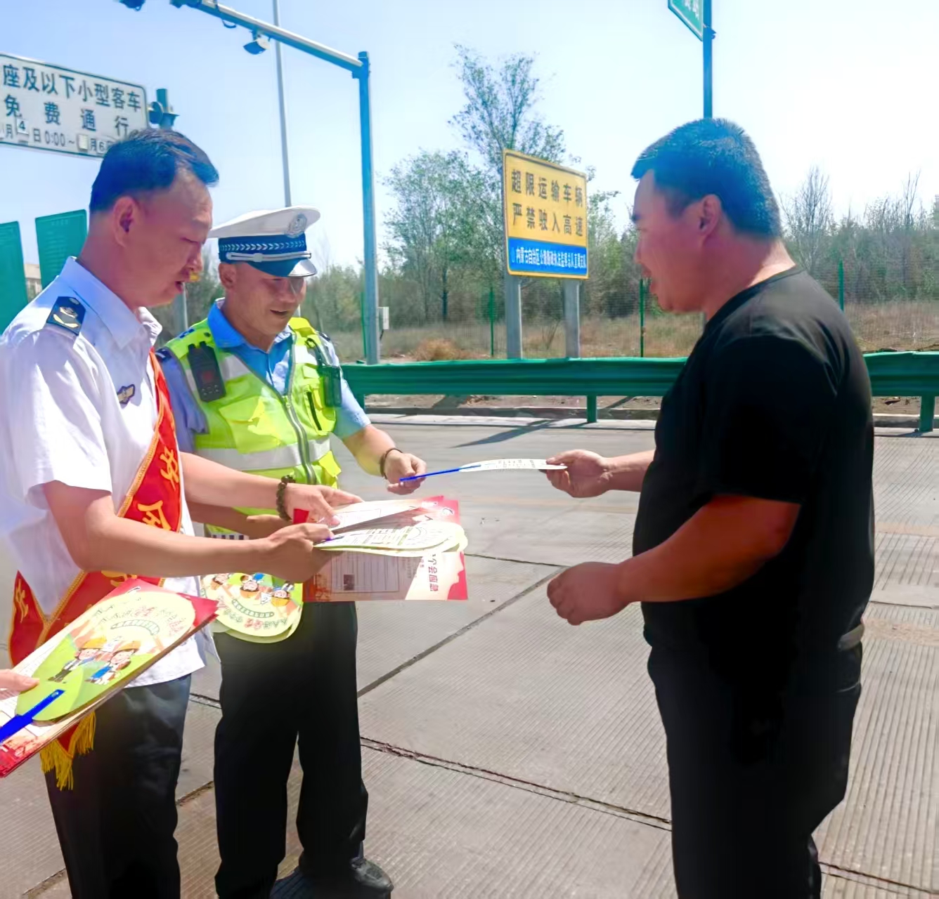 活動當(dāng)日,蒙西收費所在收費廣場醒目位置懸掛了宣傳橫幅,設(shè)立安全宣傳展板、咨詢臺等,并擺放了包含交通安全、應(yīng)急處置、家庭隱患自查等內(nèi)容的宣傳資料。工作人員熱情地向過往司乘人員發(fā)放宣傳資料,耐心解答關(guān)于安全行車、應(yīng)急救援、收費政策等方面的疑問。同時,志愿者們還結(jié)合近期典型事故案例,重點講解疲勞駕駛、酒駕醉駕、不系安全帶等行為的嚴重后果,引導(dǎo)司乘自覺遵守交通規(guī)則。
