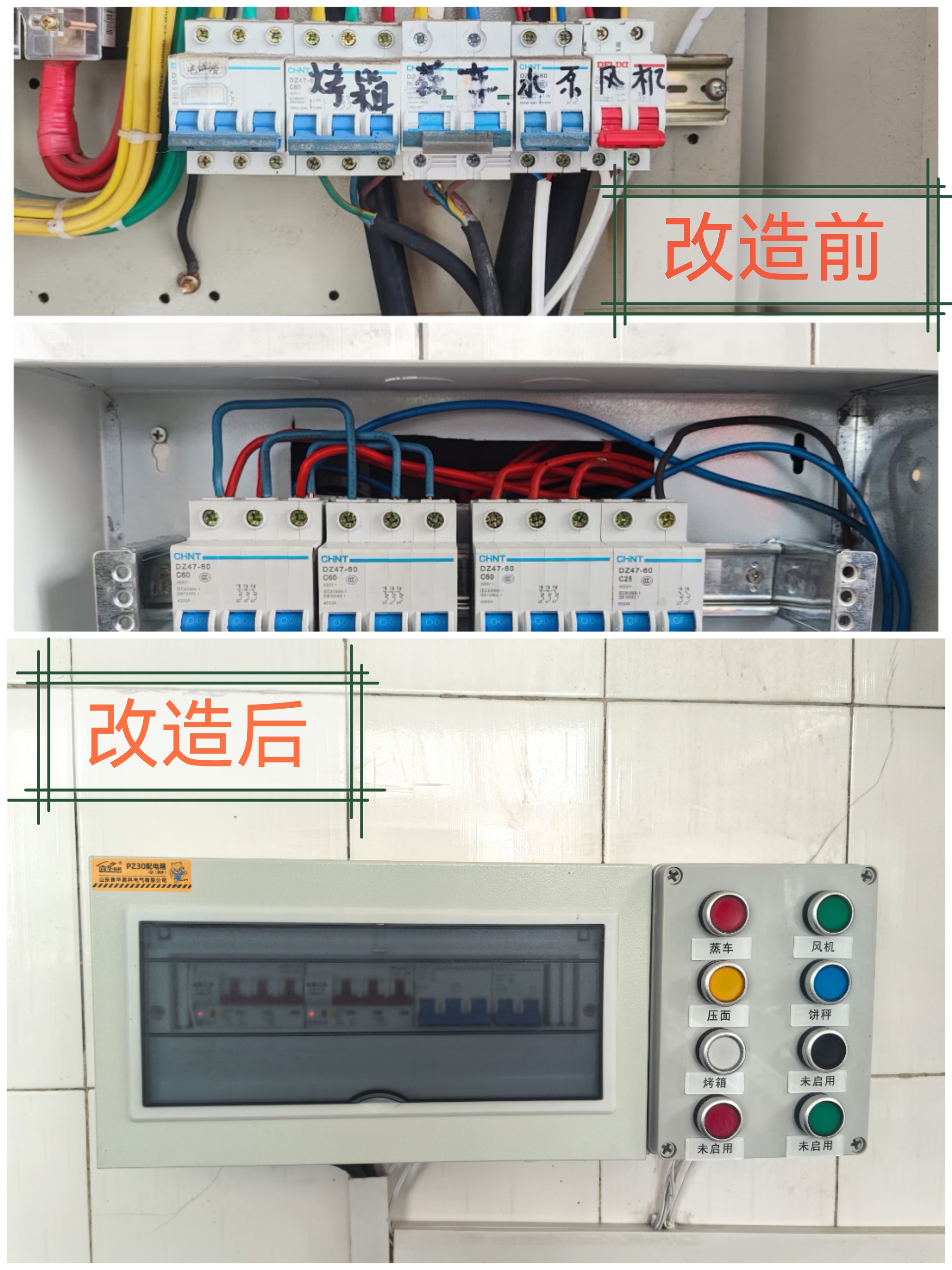 在廚房設(shè)備的日常運作中,廚師需頻繁開啟和關(guān)閉配電箱,并手動操作電源開關(guān),這不僅造成鑰匙磨損斷裂、配電箱門損壞,還帶來一定的用電安全風險。為此,巴音呼都格收費所對設(shè)備及線路實施改造升級,運用弱電控強電原理,通過安裝控制模塊,將傳統(tǒng)的強電操作轉(zhuǎn)變?yōu)槿蹼娦盘柨刂啤8脑旌?,廚房蒸箱等設(shè)備僅需按下控制器按鈕,即可實現(xiàn)電源控制。相較于傳統(tǒng)電源設(shè)備,改造后的設(shè)備不僅大幅降低了操作強度,減少了設(shè)備損壞概率,更顯著提升了用電安全性,兼具操作便捷、安全可靠、經(jīng)久耐用等優(yōu)勢。