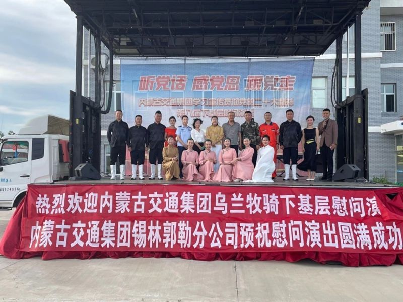 近日,內(nèi)蒙古自治區(qū)總工會(huì)北疆職工烏蘭牧騎(交通集團(tuán)烏蘭牧騎)深入烏蘭察布市、錫林郭勒盟、通遼、興安盟等4個(gè)盟市開展“凝心鑄魂跟黨走 團(tuán)結(jié)奮斗新征程”“聽黨話 感黨恩 跟黨走”基層慰問演出活動(dòng)。演出共8個(gè)場次,通過歌舞、小品、樂隊(duì)等形式多樣的節(jié)目為路政交警、解放軍、企業(yè)員工、環(huán)衛(wèi)工人、快遞小哥、農(nóng)牧民以及交通集團(tuán)一線職工等數(shù)千余人傳遞了黨的關(guān)懷。