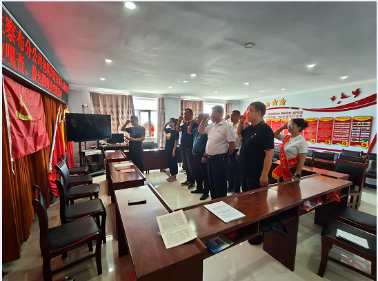 座談會(huì)后,雙方共同舉辦了“1+2”文明單位與新時(shí)代文明實(shí)踐站聯(lián)合主題黨日活動(dòng),活動(dòng)現(xiàn)場(chǎng),大家面對(duì)黨旗,高舉右手,莊嚴(yán)宣誓。鏗鏘有力的入黨誓詞,激勵(lì)全體黨員銳意進(jìn)取、踐行使命擔(dān)當(dāng)、堅(jiān)定理想信念,以更加飽滿的熱情投入到實(shí)際工作中。同時(shí),活動(dòng)還組織分公司宣講團(tuán)成員蘇俊南以牢記囑托奮力書寫中國(guó)式現(xiàn)代化內(nèi)蒙古新篇章為主題對(duì)習(xí)近平總書記考察內(nèi)蒙古重要講話精神進(jìn)行宣講。