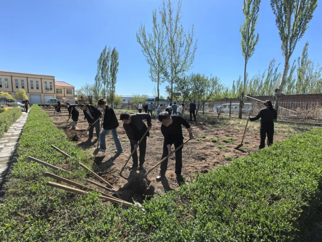 機關(guān)全體工作人員放下手頭的辦公事務(wù),來到辦公樓前的種植區(qū)域,取用統(tǒng)一放置的工具。九塊責(zé)任田已經(jīng)按照田壟劃分好,大家各自奔向所屬的區(qū)域。在各部室負責(zé)同志的帶領(lǐng)下,戴上手套,擼起袖子,拿好鐵鍬,熱火朝天地開始完成去除磚石、除草平整、土壤翻松的任務(wù)。所有同志積極勞動,交流心得,揮汗如雨,全身心地投入到火熱的勞動中。在一番精心清理后,雜草叢生、錯落不平的土地變得整齊平直、井井有條,面貌煥然一新,給下一步土豆、大蔥、毛豆的種植和生長創(chuàng)造了有利的條件。