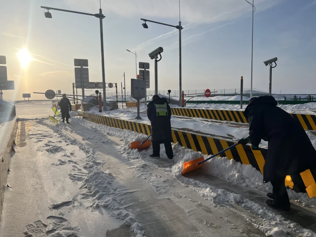 梅力蓋圖收費所:應急演練,未雨綢繆。為應對低溫雨雪冰凍災害,梅力蓋圖收費所組織開展應急演練主題活動,模擬多種突發(fā)情況,提高職工應急反應處置能力。同時,在降雪天氣中,職工們迅速集結,利用除雪工具全面清理收費廣場、車道積雪,確保道路通行順暢。