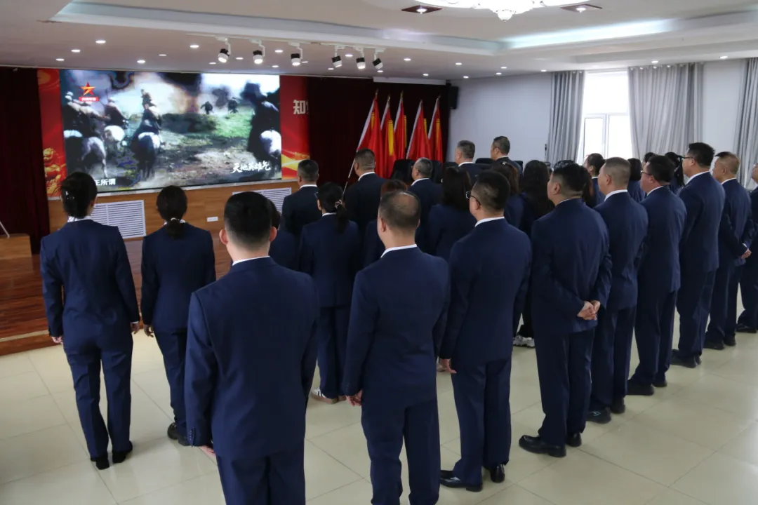 上午9時(shí)30分,會(huì)議室大屏幕同步展示“傳承英烈精神·奮進(jìn)偉大征程”的活動(dòng)主題,全體參加人員整齊肅立,寄托哀思。