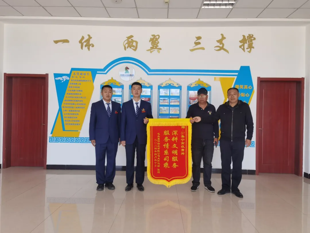 5月1日,集寧南收費(fèi)所收到一份意外驚喜,司機(jī)郭師傅,把一面印有“深耕文明服務(wù) 服務(wù)情系司乘”的錦旗送到收費(fèi)所,向全體收費(fèi)所工作人員的真誠幫助表示感謝。