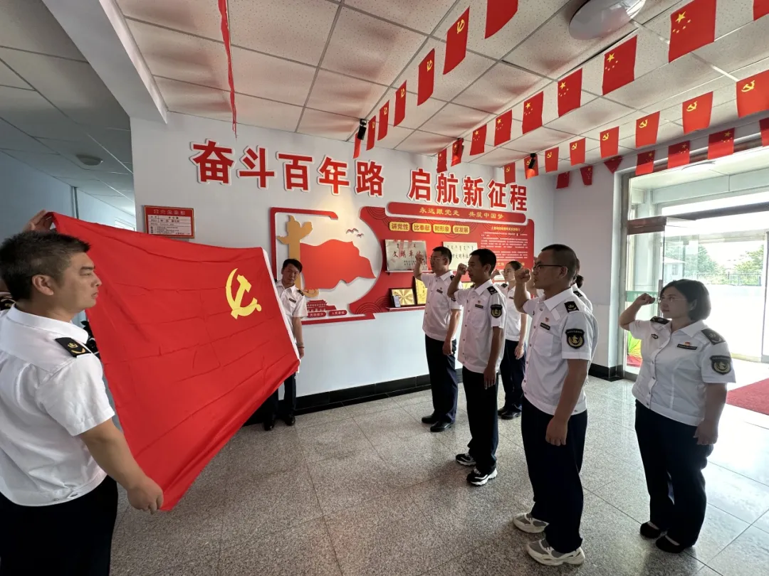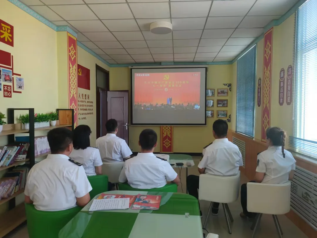 首先,在二連浩特收費(fèi)所值班所長的帶領(lǐng)下,全體黨員面向黨旗,高舉右拳,莊嚴(yán)宣誓。通過重溫入黨誓詞,每位黨員都接受了一次深刻的思想洗禮,進(jìn)一步強(qiáng)化了對黨忠誠、全心全意為人民服務(wù)的擔(dān)當(dāng)使命。隨后,大家紛紛面向黨旗,與黨旗合影,表達(dá)黨員們對建黨103周年的真摯祝福與崇高敬意。最后,集中觀看紅色電影《上甘嶺》,緬懷革命先烈的豐功偉績,讓黨員進(jìn)一步接受革命傳統(tǒng)教育和愛國主義教育,砥礪初心使命。