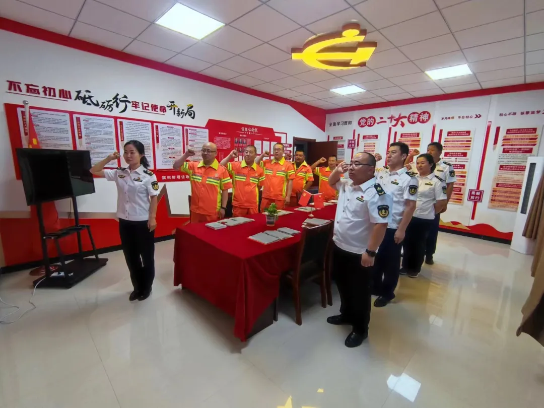 活動最后,面對鮮紅的黨旗,支部黨員們一起高舉右手,在領(lǐng)誓人的帶領(lǐng)下再次莊嚴(yán)宣誓。