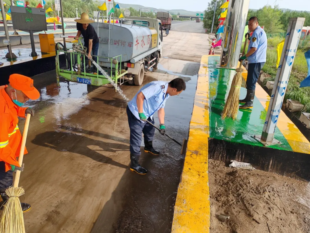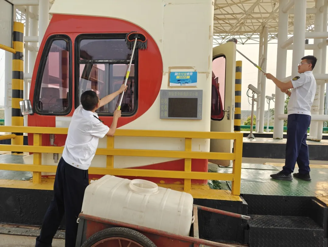賽漢塔拉南收費(fèi)所組織在所職工利用休息時(shí)間開展收費(fèi)崗?fù)ばl(wèi)生大掃除活動(dòng)。大掃除開始后,大家分工合作,對(duì)收費(fèi)票亭、收費(fèi)車道等設(shè)施設(shè)備上的灰塵、污漬進(jìn)行徹底擦拭、沖洗和打掃,清洗收費(fèi)崗?fù)さ拿恳粋€(gè)角落,全力打造干凈整潔的窗口環(huán)境。