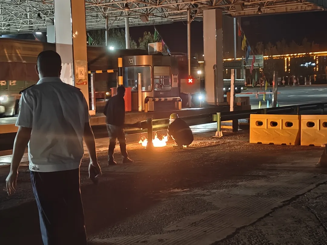面對這些不速之客,7月28日,值班所長組織相關(guān)工作人員正式開展“驅(qū)蜂行動”。待夜幕降臨,漫天飛舞的蜜蜂們都聚集到了收費大棚上,工作人員穿上防護服,戴好防護面罩等,在做好個人防護措施的同時,借助挖掘車慢慢靠近蜂群落腳點。本次除蜂行動采用“火攻”的方式進行清除,經(jīng)過一個多小時的多次圍剿,逗留在收費站的蜜蜂被驅(qū)除干凈,順利消除了安全隱患。