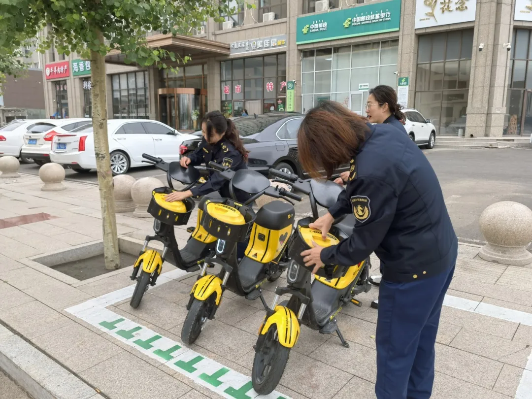 活動(dòng)中,志愿者們身著統(tǒng)一服裝,精神飽滿的穿梭在城市的大街小巷,把“摔倒”在路邊的單車扶起來、把胡亂停放的移至規(guī)定位置排整齊。在擺放共享單車的過程中,他們還積極向過往行人宣傳文明出行、規(guī)范停車的重要性,倡導(dǎo)大家共同維護(hù)城市的整潔和有序。經(jīng)過努力,支部活動(dòng)區(qū)域的城市道路面貌煥然一新,他們用汗水和努力,讓城市變得更加美麗、有序,為城市環(huán)境整治工作增添了一抹亮麗的色彩,周邊群眾紛紛投來贊許的目光。