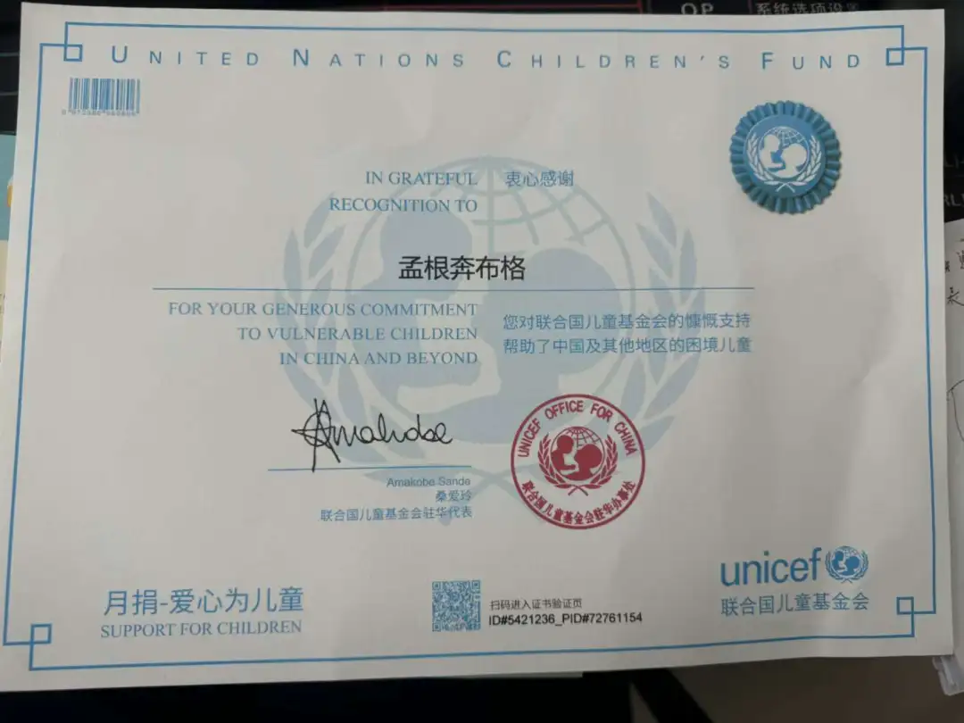 近日,一封來自聯(lián)合國兒童基金會駐華代表處的快遞寄到了內(nèi)蒙古交通集團(tuán)烏蘭察布分公司齊哈收費所孟根奔布格的手中,里面有一封聯(lián)合國兒童基金會駐華代表桑愛玲親筆簽名的感謝信和一枚紀(jì)念戒指。