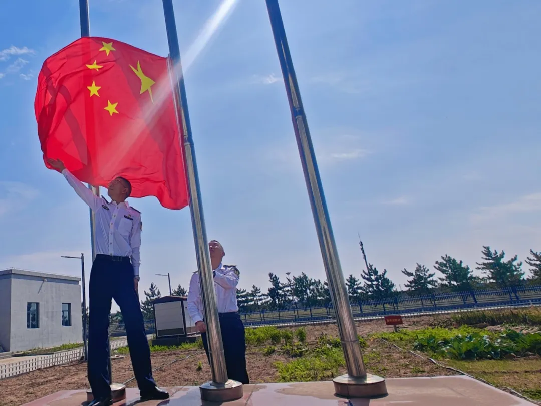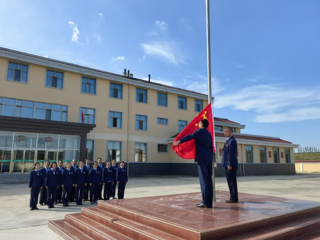 全體人員嚴整著裝,整齊列隊,莊嚴肅立。在莊嚴雄壯的國歌聲中,鮮艷的五星紅旗在熹微晨光的沐浴下,在眾人的注目禮中,冉冉升起,在場人員心情澎湃、豪情滿懷。