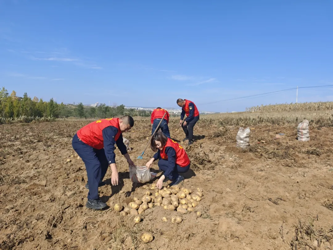 興和收費(fèi)所將志愿服務(wù)活動“搬”到田間地頭,幫助群眾搶收土豆。志愿者們擼起袖子、俯下身子,包片采收,挖土豆、撿土豆、裝土豆、搬土豆,分工明確,各司其職,一個個忙碌的身影在土豆地中揮灑著自己的青春熱血,一袋袋豐收的喜悅,一把把辛勤的汗水交相輝映,一幅秋收的“金黃”與志愿的“鮮紅”形成了田間地頭一道靚麗的風(fēng)景線。