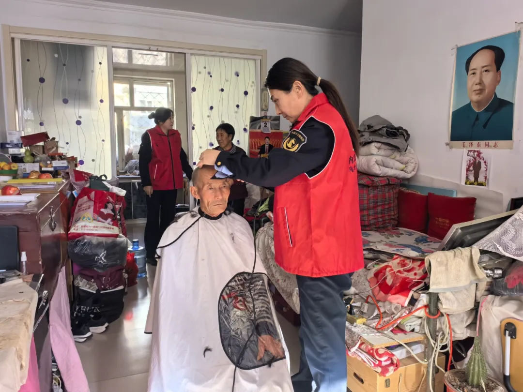 志愿者們攜手進(jìn)入興和縣興發(fā)社區(qū)周愛(ài)蘭家中,手持理發(fā)工具,耐心的為年邁的老人剪頭發(fā),她手法熟練、細(xì)心,老人臉上洋溢著幸福的笑容。另一部分志愿者拿起掃帚、抹布等清潔工具,為老人掃地拖地、擦柜子、擦玻璃,對(duì)老人的房間進(jìn)行了的打掃和整理,在志愿者們的努力下,老人的房間變得干凈整潔。