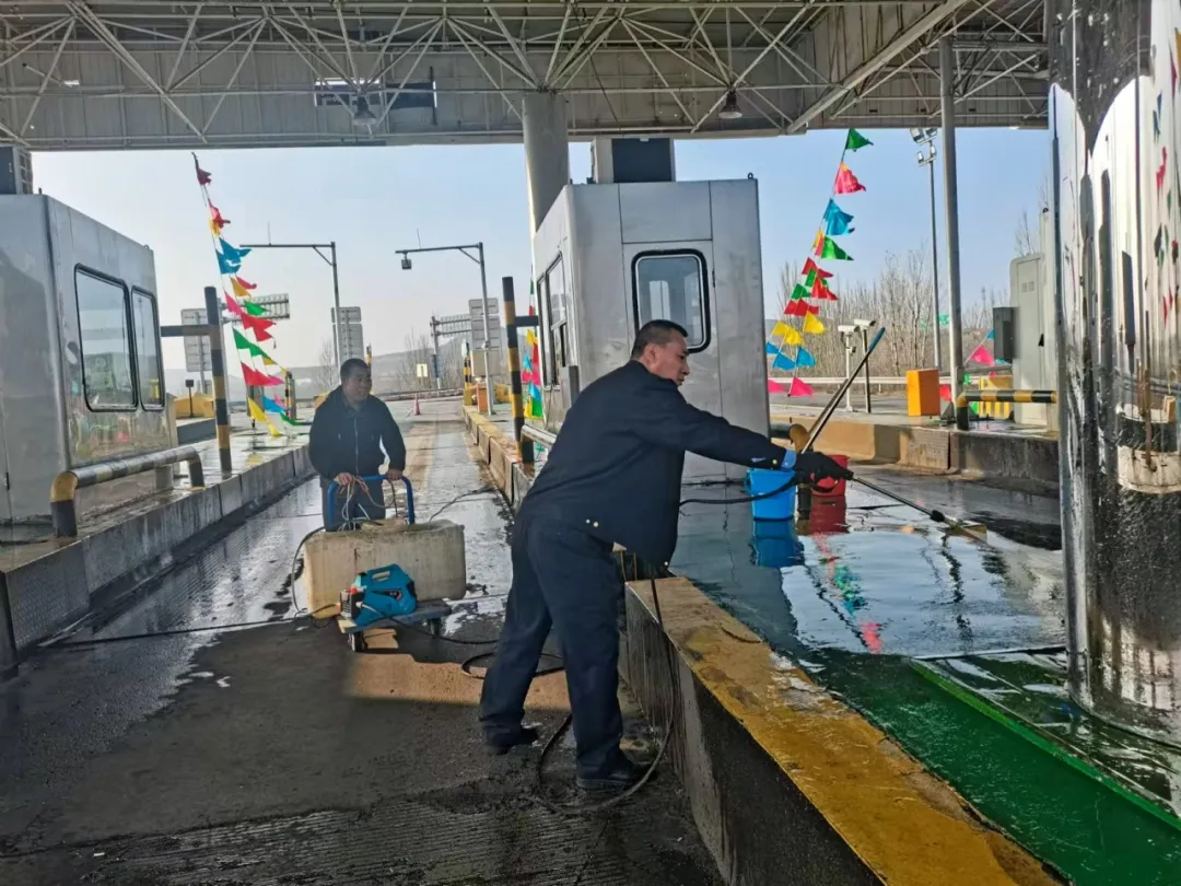 擦亮窗口 提升服務(wù)品質(zhì)形象。在專項整治中,工作人員細(xì)化“三步清潔法”:先采用高壓水槍沖洗車道油污,再用長柄刷重點清除地磅縫隙積塵,最后用抹布逐一對票亭玻璃、操作臺進(jìn)行消毒擦拭,亮化工作環(huán)境的同時為司乘提供“暢安舒美”的出行環(huán)境。