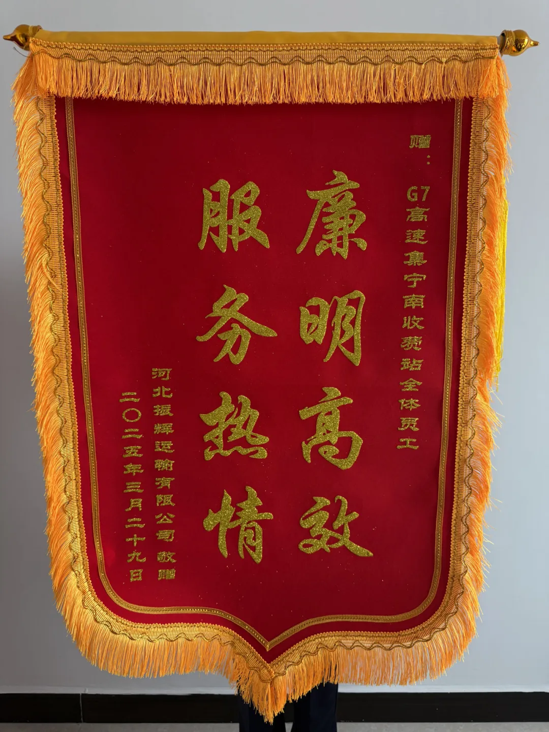 錦旗是肯定,更是鞭策,它傳遞的不僅是司乘對我們服務的認可,更是對高速公路服務品質的期待。集寧南收費所將繼續(xù)踐行“微笑真心、服務貼心、助人熱心、解釋耐心、工作細心”五星“心”級服務宗旨,以司乘需求為導向,持續(xù)深化服務內涵,打造更高效、更溫馨的窗口形象,為公眾出行保駕護航。